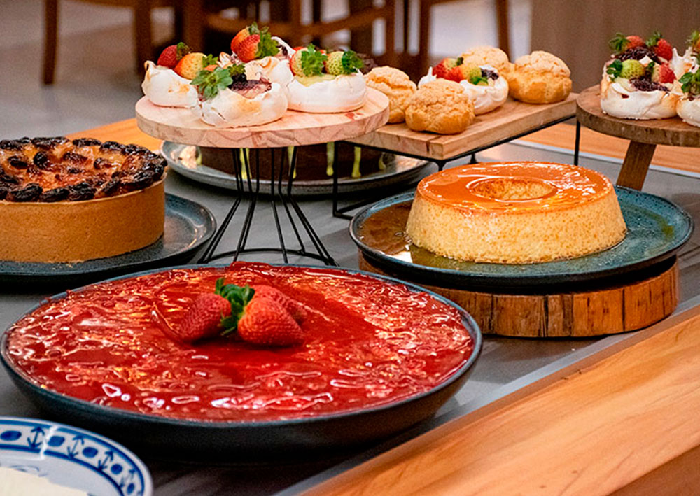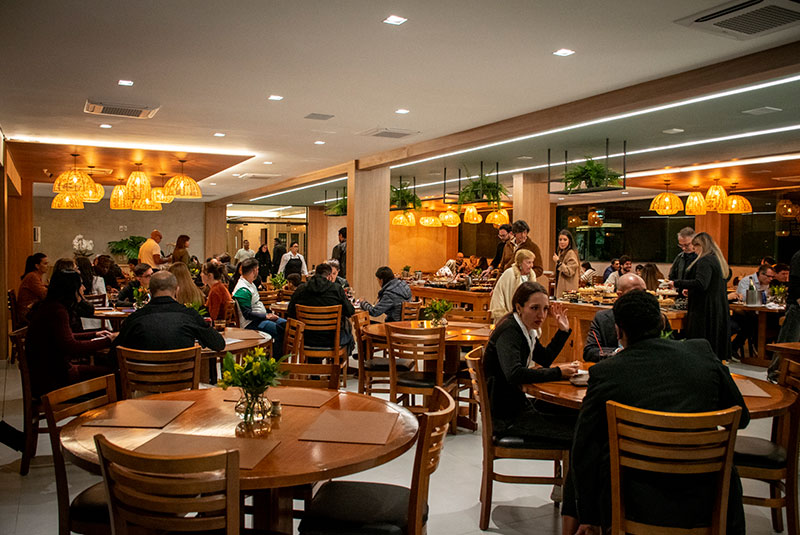 Espaço amplo, iluminado por luz natural com linda vista para a natureza. Nossa equipe de profissionais da gastronomia prepara sempre cuidadosamente um delicioso cardápio com o melhor da gastronomia nacional e internacional.