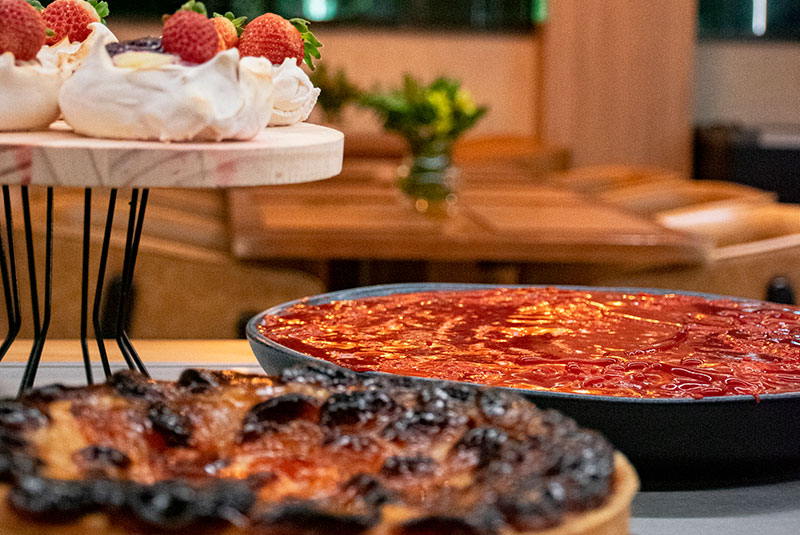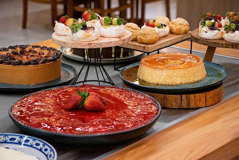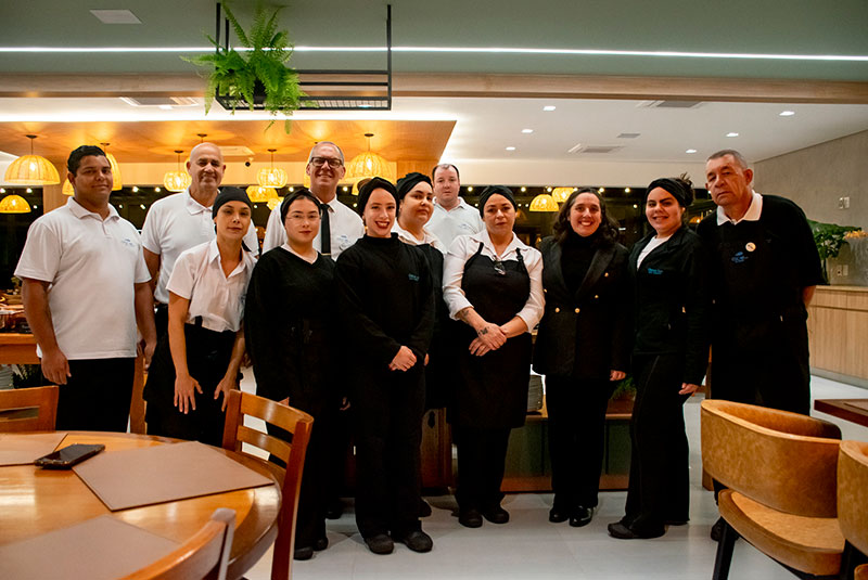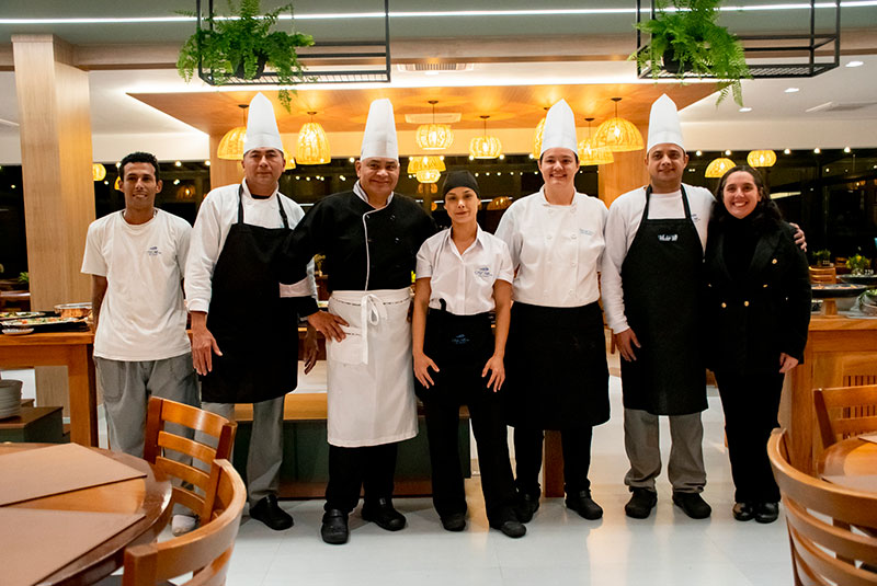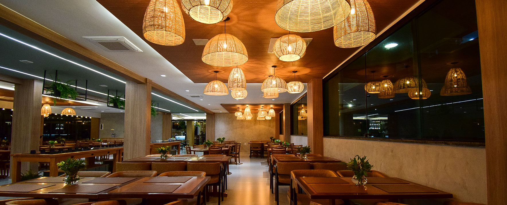 Espaço amplo, iluminado por luz natural com linda vista para a natureza. Nossa equipe de profissionais da gastronomia prepara sempre cuidadosamente um delicioso cardápio com o melhor da gastronomia nacional e internacional.